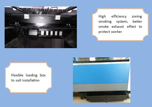 3. მაღალი ეფექტურობის ზონირების მოწევა სისტემა მანქანა სხეულის ორივე მხარეს, ძლიერი სეგმენტირებული მტვერი და მოწევის შეგროვება, ეს შეამცირებს მუშებს.